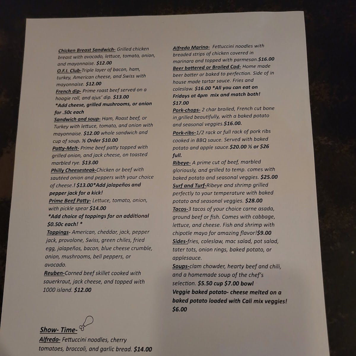 The menu at Old Father Inn offers a solid selection of casual bites and comforting drinks that suit its relaxed neighborhood bar atmosphere. You’ll find satisfying options like juicy cheeseburgers paired with fries, hearty ribeye steaks, and crowd favorites such as their combo platters and flavorful Buffalo burgers. The food leans toward classic American bar fare with a few twists, making it easy to enjoy during a laid-back evening with friends or a casual weekend outing.